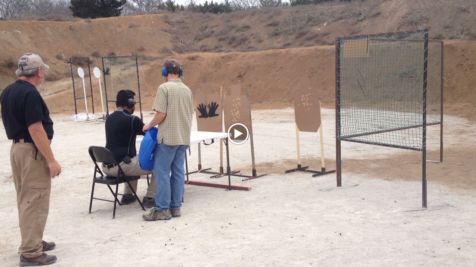 Stage 3 (my last to shoot) had 6 targets to engage. Begin seated facing up range with pistol in a box on a podium behind you and to the left. At the start, stand, retrieve weapon from the box and engage three targets while in retreat to cover. Two targets have hard cover on bodies, so heads need one each. Third is a Mozambique (two in body, one in head). Next shooting position, engage two targets in tactical priority, both Mozambiques. Advance to a third position and engage the final target, again Mozambique.